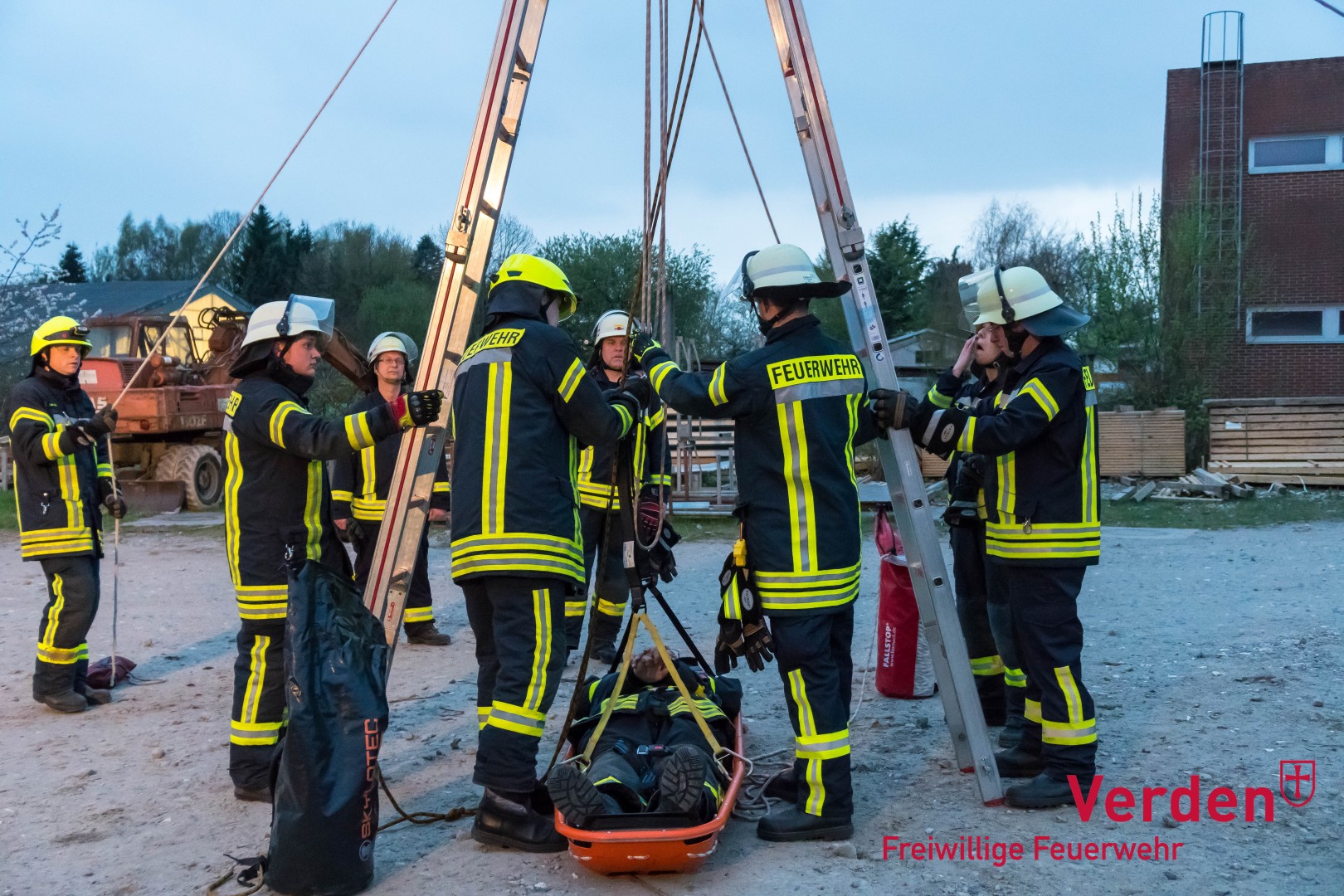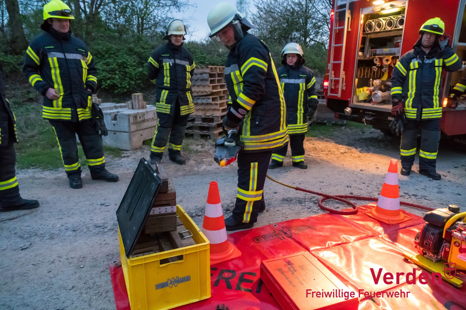 Um die Zusammenarbeit zu vertiefen, übten kürzlich die Verdener Ortsfeuerwehren Dauelsen und Walle auf dem Gelände des Bauunternehmen Oelkers in Verden-Walle. Hier bieten sich vielfältige Möglichkeiten, um den Umgang mit hydraulischem Rettungsgerät, tragbaren Leitern sowie Lufthebekissen zu üben, so Frank Carstens von der Ortsfeuerwehr Walle.