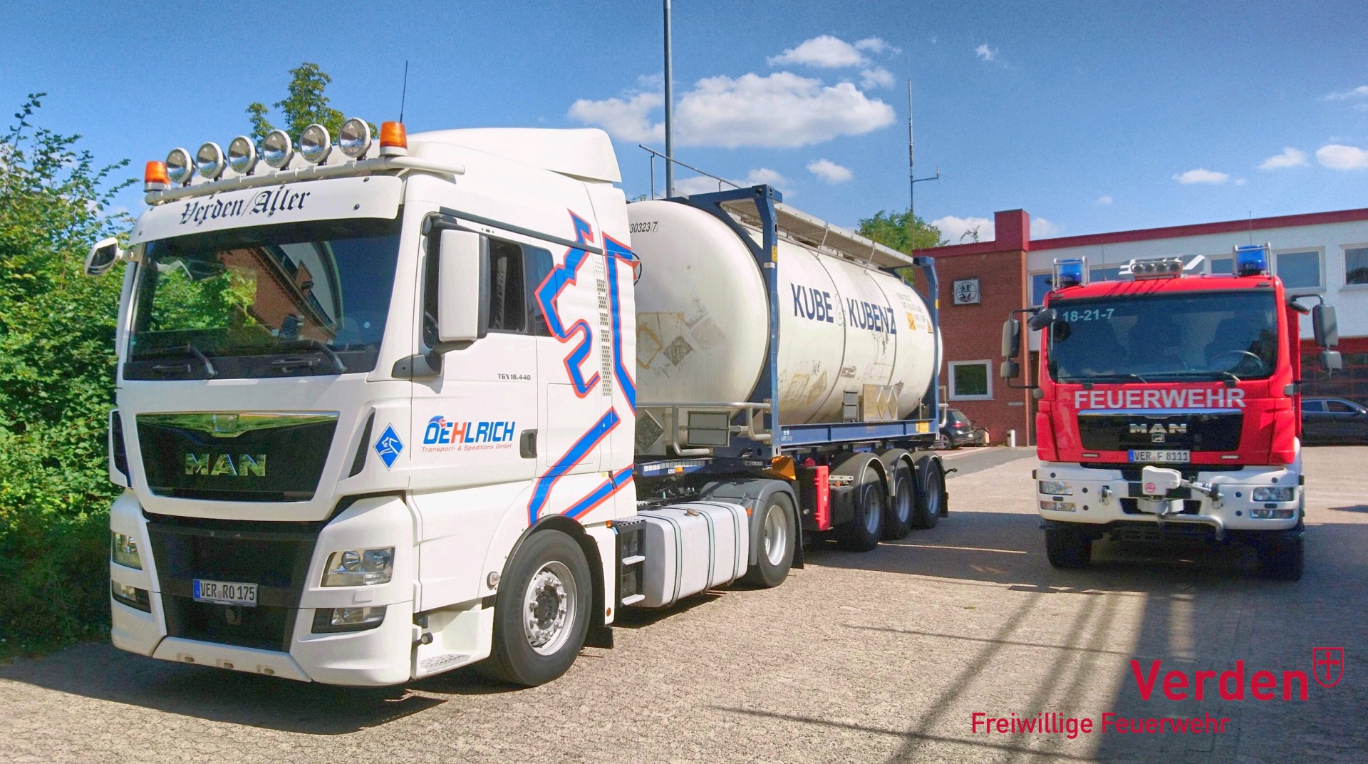Die Mitarbeiter des in der Max-Planck-Straße ansässigen Unternehmens waren durch einen Facebookbeitrag einer Spedition aus Nordrhein-Westfalen, welche Tankwagen als Löschwasserreserve für die örtliche Feuerwehr zur Verfügung stellt, auf die Idee gekommen dies auch den Verdener Brandschützern anzubieten. Aufgrund der momentan hohen Brandgefahr in der Vegetation, wurde das Angebot von den Einsatzkräften in der Stadt Verden sehr gerne angenommen.