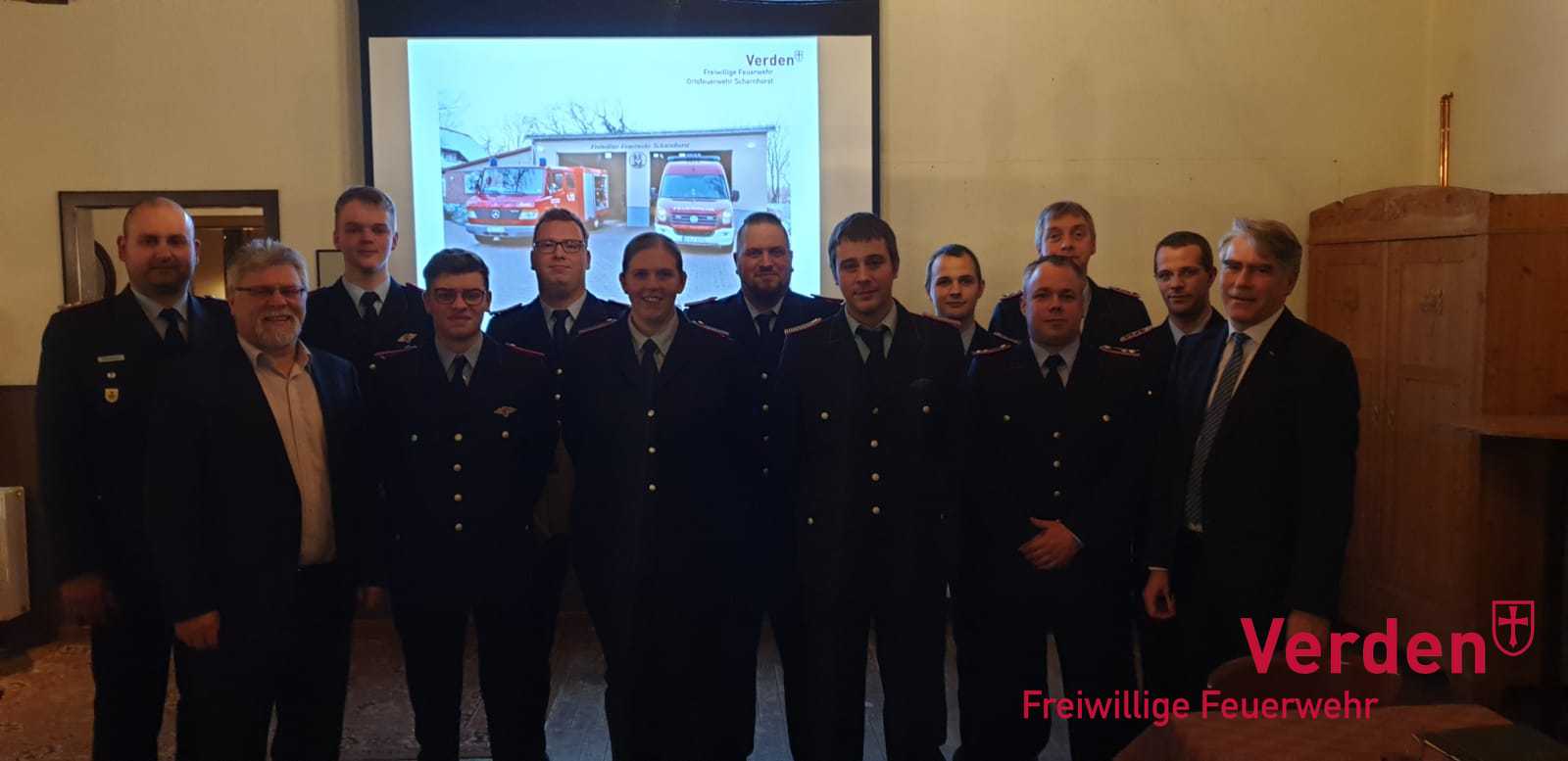 Mit Andreas Lage, Steffen Ewald und Kai Scharnhusen konnten drei neue Mitglieder gewonnen sowie mit Julian Paul Rippe ein Kamerad aus der Jugendfeuerwehr übernommen werden. Der Ortsfeuerwehr Scharnhorst gehören damit nunmehr 42 Kameradinnen und Kameraden an.