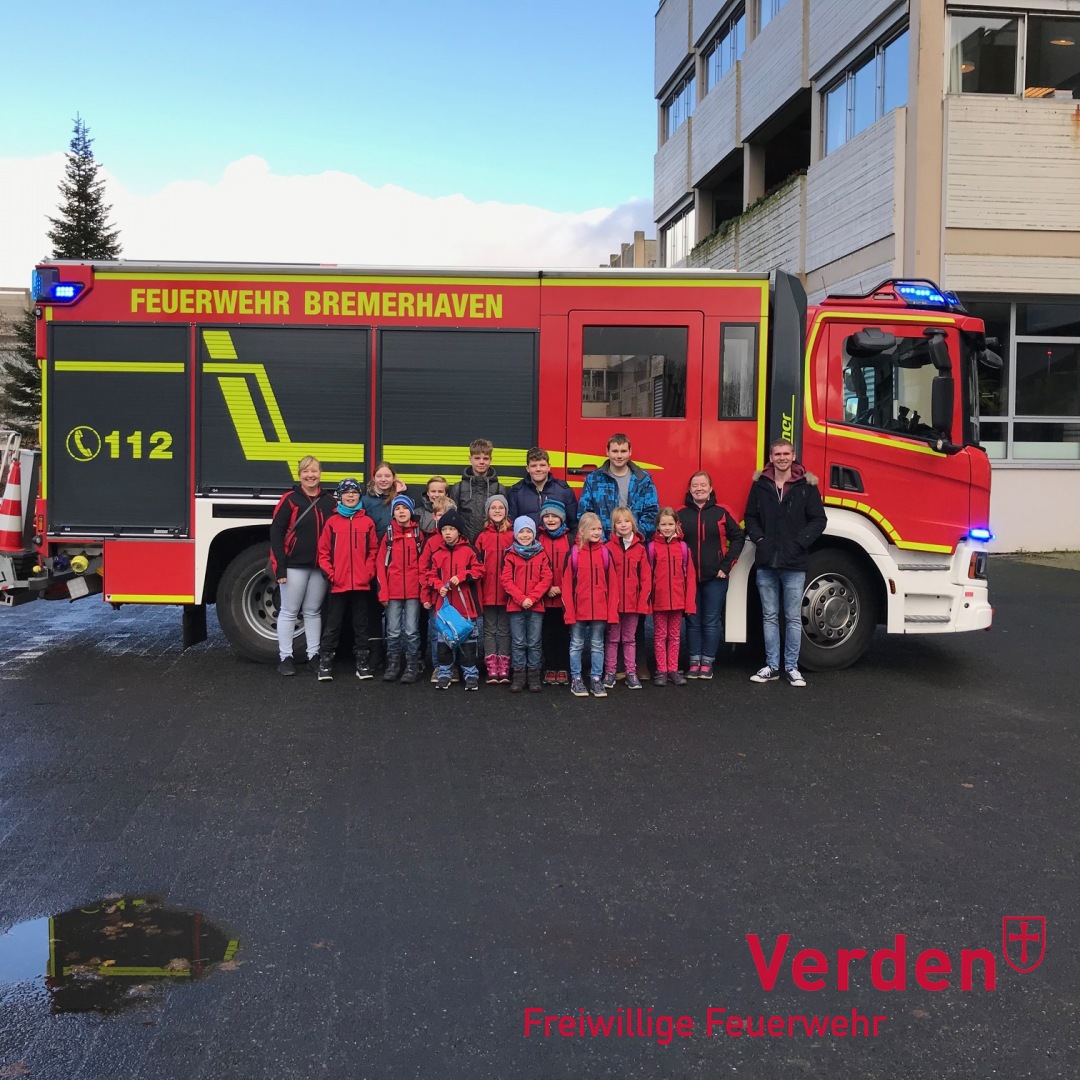 Einen spannenden Tag verbrachten am Wochenende die Kinder- und Jugendfeuerwehr Eitze bei der Berufsfeuerwehr Bremerhaven. Die fünfzehn Kinder- und Jugendlichen erhielten gemeinsam mit ihren Betreuern Einblicke in den Alltag auf der Feuerwache. Neben einer Führung durch die Wache und der der Fahrzeughalle mit den Einsatzfahrzeugen, standen ebenso Probesitzen in der neuesten Generation Hilfeleistungslöschgruppenfahrzeugen (kurz HLF) sowie das Erklimmen des Schlauchturmes auf dem Programm.