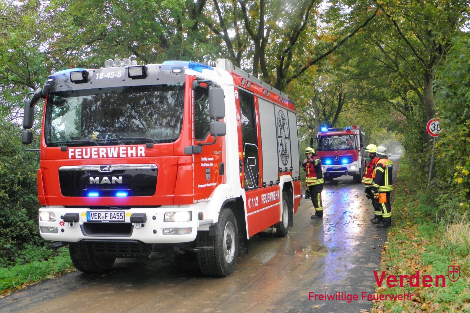 Zum Glück eine Alarmübung der Ortsfeuerwehren Döhlbergen-Rieda, Hönisch-Hutbergen und Hemsbünde (Landkreis Rotenburg) und der Auftakt für einen Feuerwehrübungstag. Simuliert wird ein Entstehungsbrand in einer Lagerhalle und im Verlauf der Übungslage stellt sich heraus, dass drei Personen unter Atemschutz gerettet werden müssen.