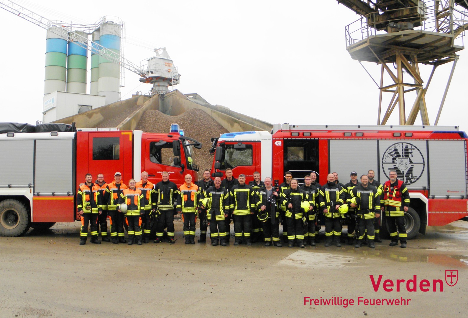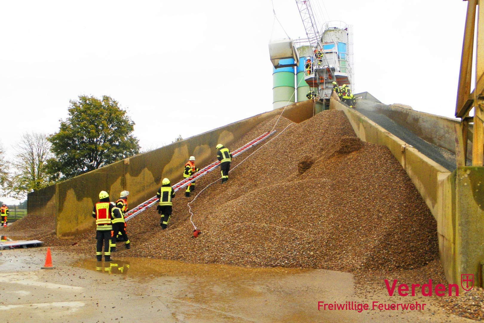 Die dritte und letzte Lage ist die simulierte Folge einer Verpuffung in einem Betonmischwerk an der Weser in der Nähe von Groß Hutbergen. Eine Person wurde über ein Geländer geschleudert und eine zweite Person ist in den Kiesmischbunker der Mischanlage gestürzt. Auch eine Einsatzkraft rutscht simuliert in diesen ab und muss ebenfalls gerettet werden.