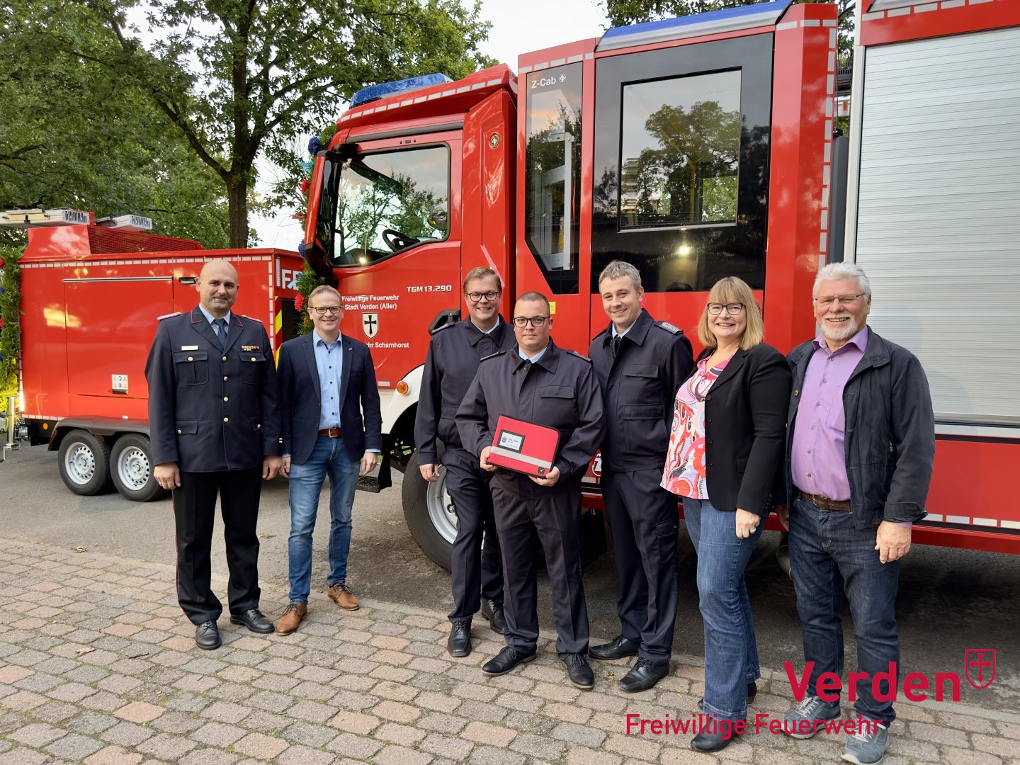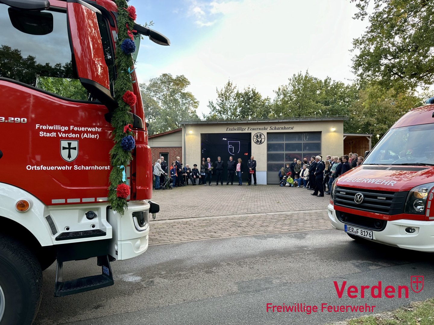 Gleich zwei Einsatzfahrzeuge konnte Verdens stellvertretende Bürgermeisterin Claudia Wehrstedt an die Ortsfeuerwehr Scharnhorst übergeben: Ein Löschgruppenfahrzeug LF10 und eine Netzersatzanlage. Feierlich wurden beide Einsatzfahrzeuge durch die Mitglieder von Kinder- und Jugendfeuerwehr sowie der Einsatz- und Seniorenabteilung in Empfang genommen.