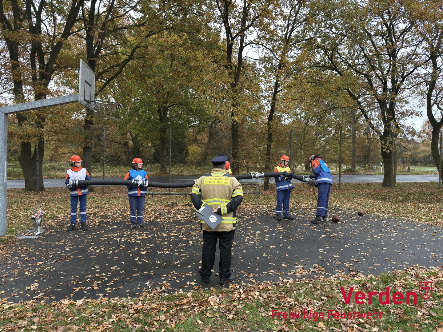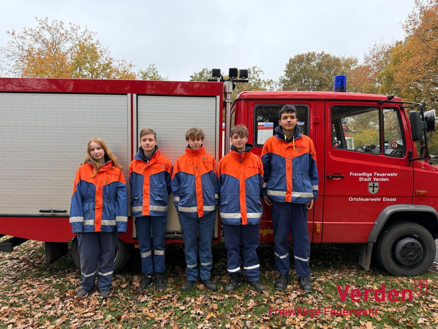 Bei der Abnahme am Samstag nahmen über 80 Jugendliche aus dem gesamten Kreisgebiet teil. Aus der Stadt Verden nahm die Jugendfeuerwehr Eissel mit fünf Jugendlichen teil. Alle fünf konnten erfolgreiche die Jugendflamme Stufe 2 abschließen. Zu den Aufgaben gehörten das Absichern eines Fahrzeugs, das Setzen eines Standrohrs, das Aufbauen eine Saugleitung und eine Aufgabe zum Thema Fahrzeug- und Gerätekunde.