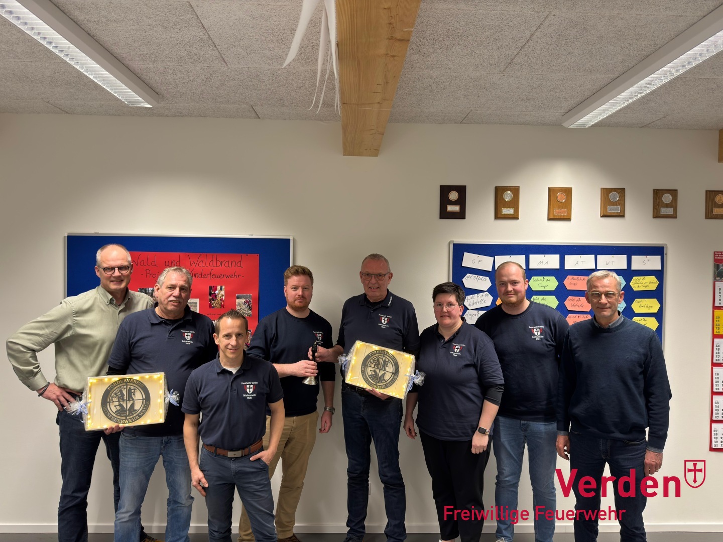 Ein besonderer Moment der Versammlung war die Würdigung der langjährigen Vorstandsmitglieder Peter Junge und Jürgen Feist. Beide haben über viele Jahre hinweg mit großem Engagement und persönlichem Einsatz die Arbeit des Fördervereins maßgeblich geprägt. Durch ihre kontinuierliche Unterstützung konnten zahlreiche Anschaffungen und Projekte zugunsten der Ortsfeuerwehr realisiert werden. Ortsbrandmeister Henning Paul bedankte sich im Namen aller Mitglieder ausdrücklich für ihren unermüdlichen Einsatz und ihre Verdienste und übergab den Zweien ein Präsent.