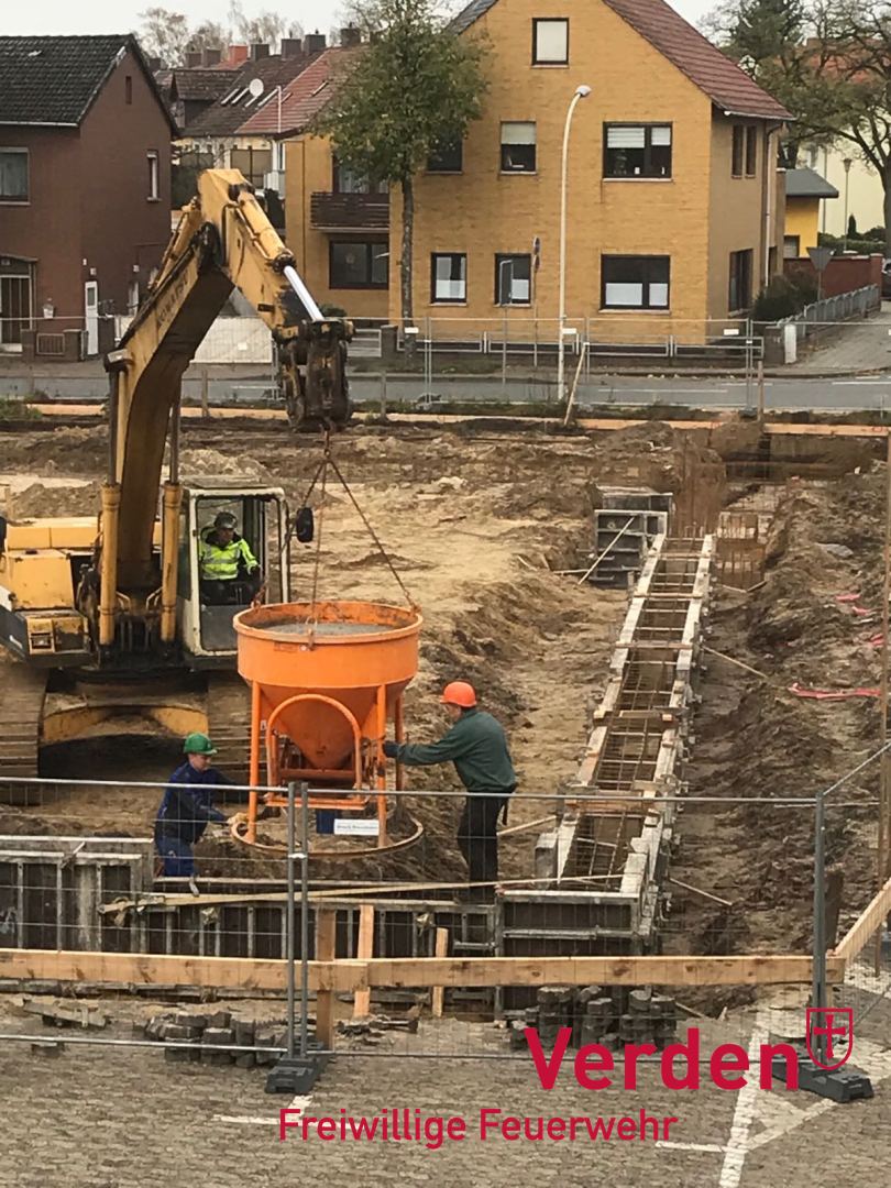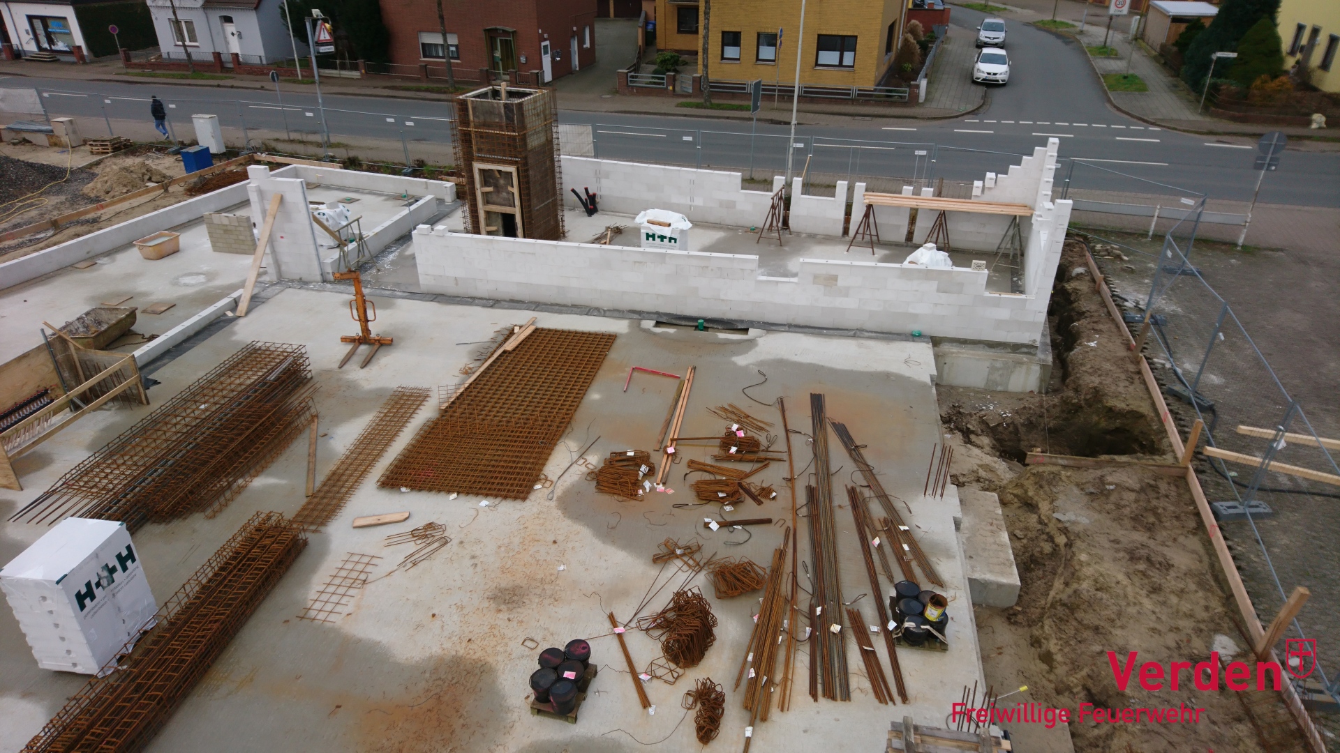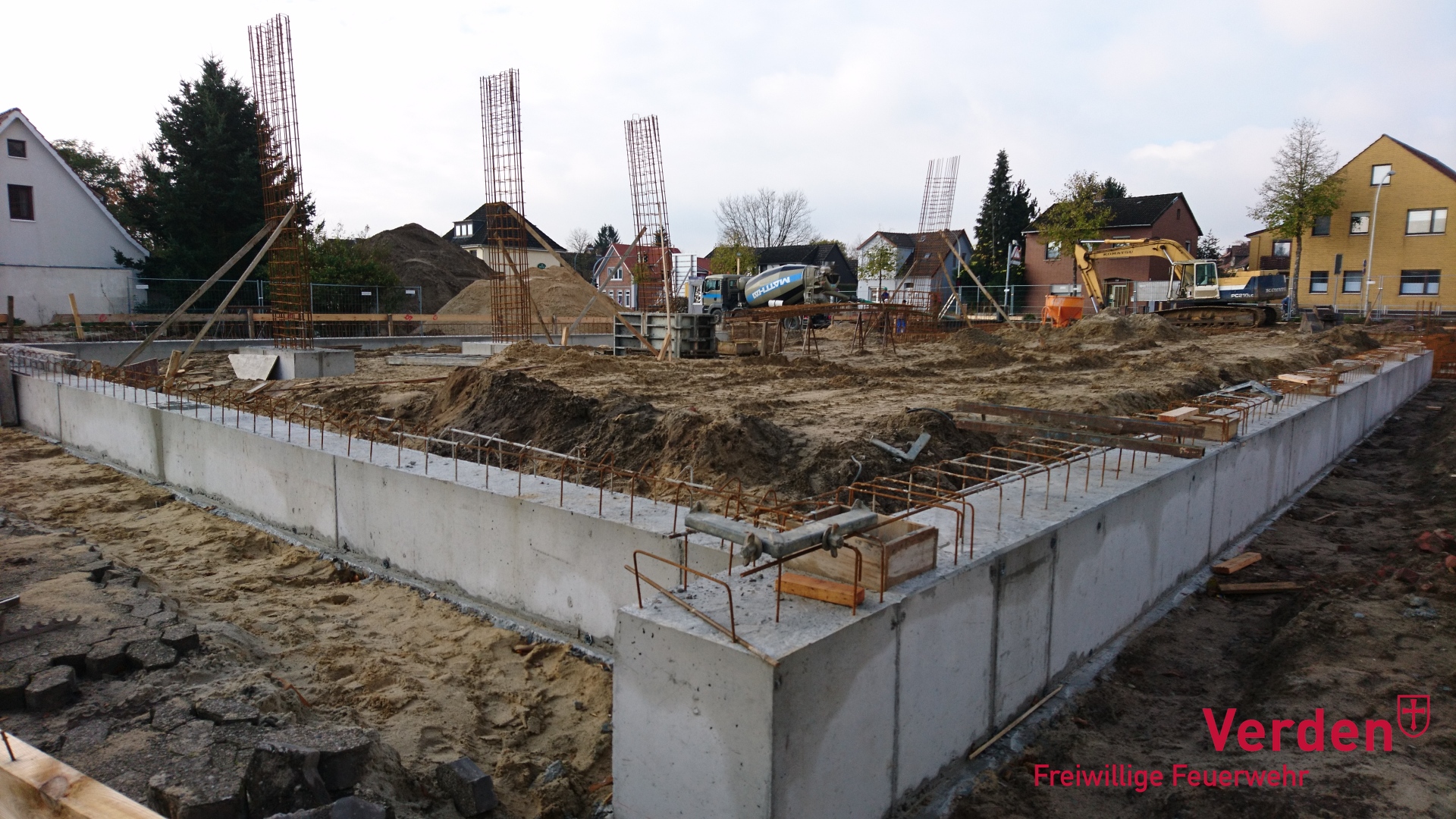 Am Dienstag den 06.12.2017 trafen sich Vertreter der Stadt Verden, des zuständigen Architektenbüros sowie einige Mitglieder der Ortsfeuerwehr Verden zur Grundsteinlegung. Traditionell wurde ein Kupferrohr mit einer aktuellen Tageszeitung und ein paar Geldmünzen eingemauert.