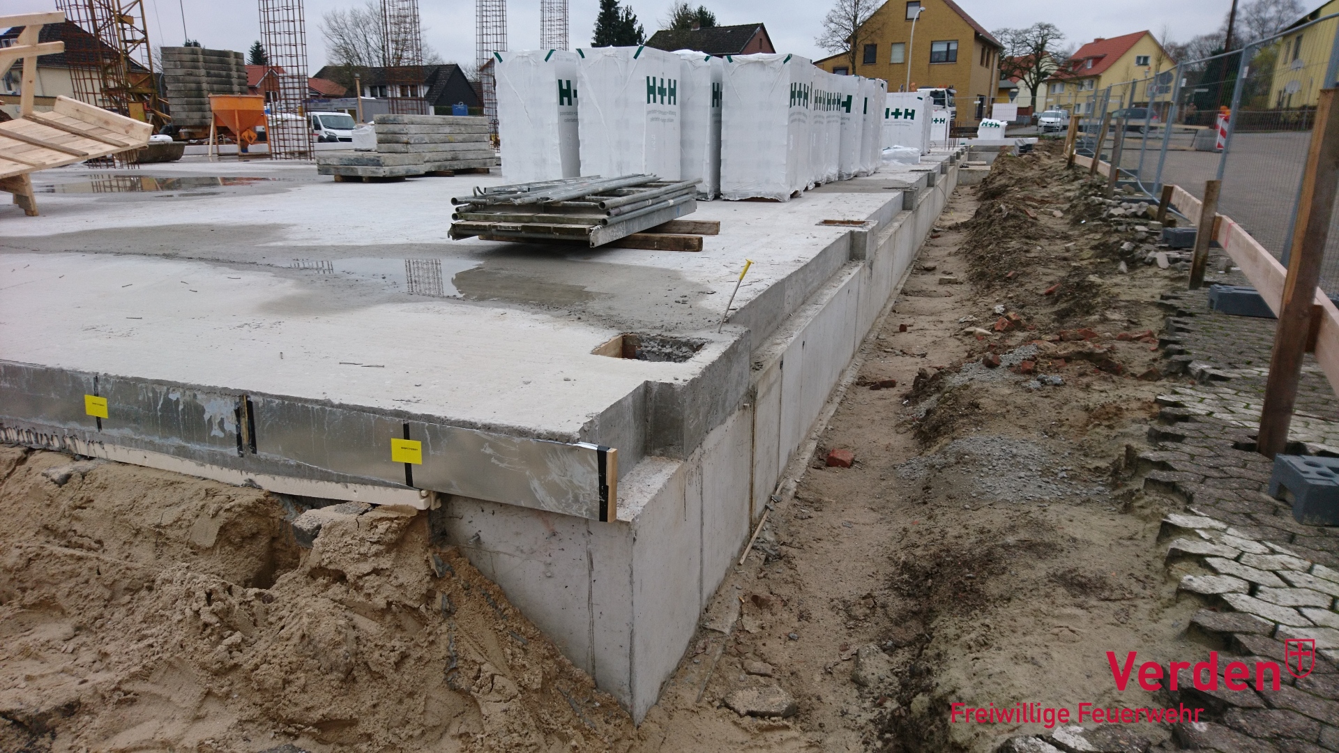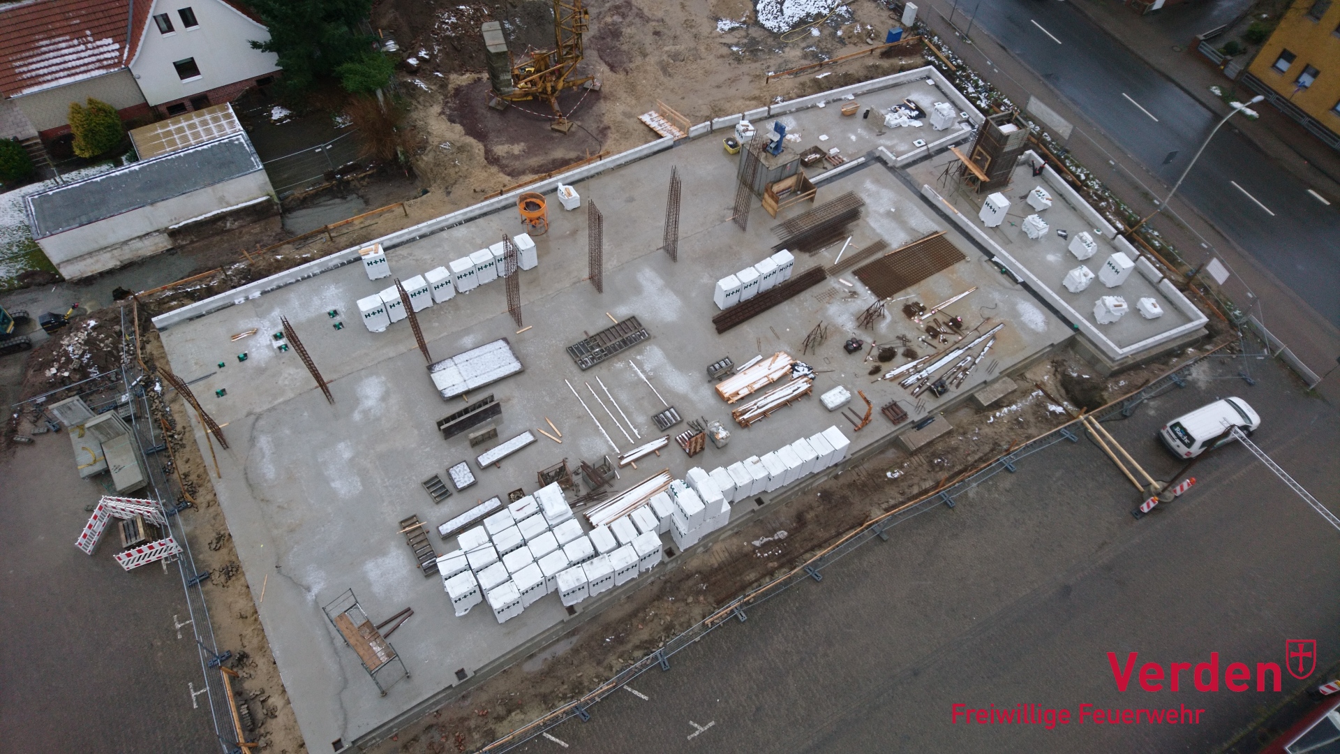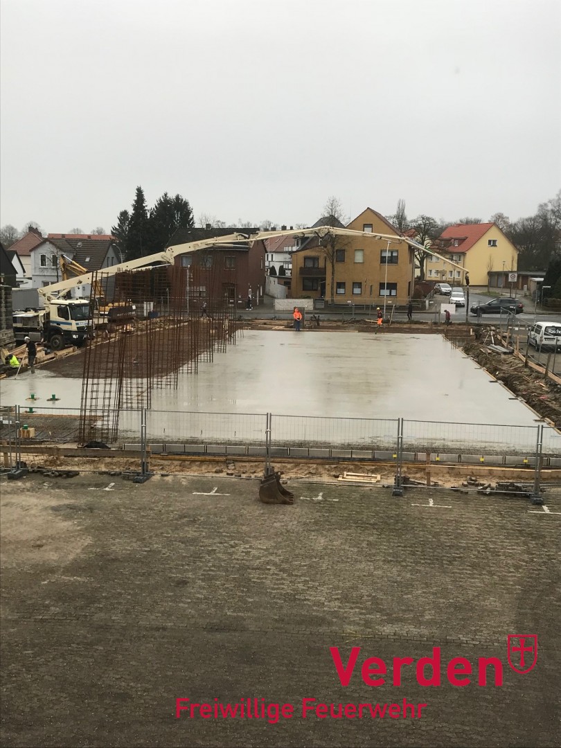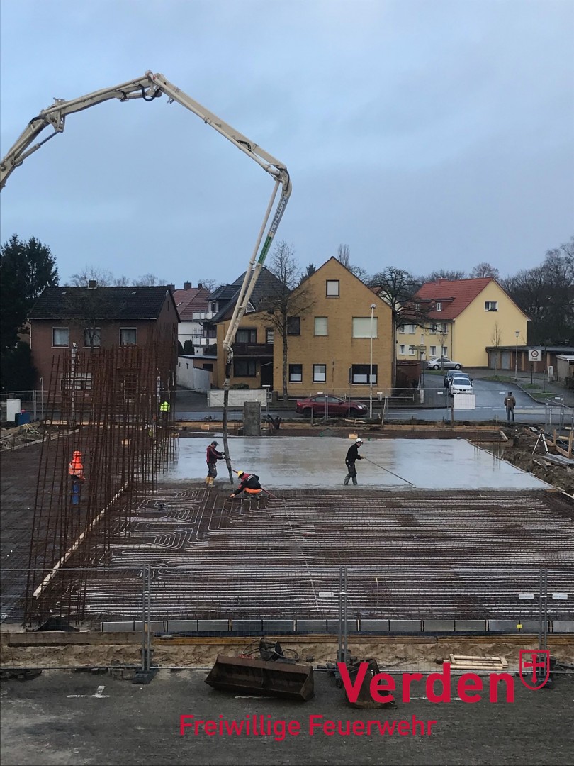 Am Dienstag den 06.12.2017 trafen sich Vertreter der Stadt Verden, des zuständigen Architektenbüros sowie einige Mitglieder der Ortsfeuerwehr Verden zur Grundsteinlegung. Traditionell wurde ein Kupferrohr mit einer aktuellen Tageszeitung und ein paar Geldmünzen eingemauert.