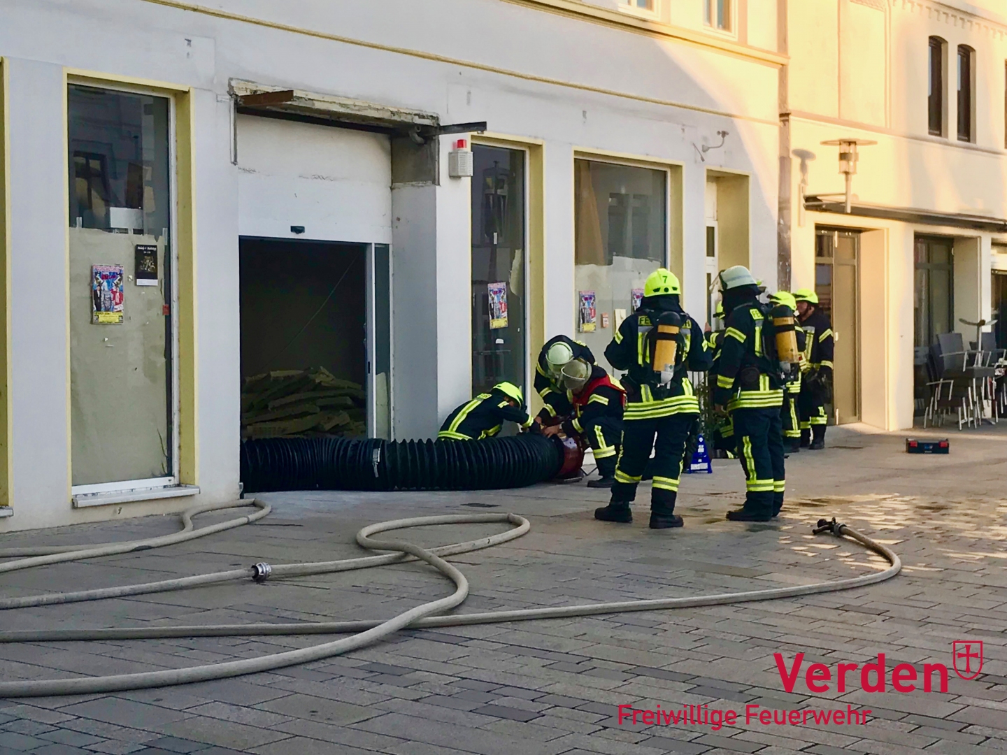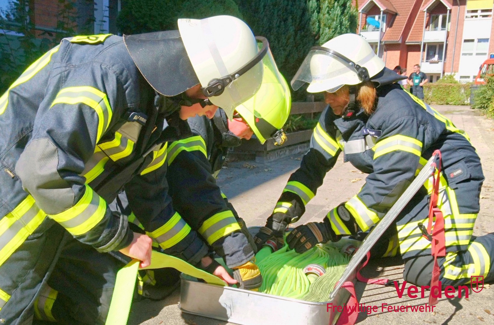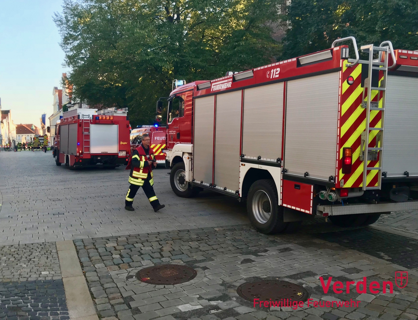 Am Dienstagmittag gegen 13:34 Uhr erreichte ein Hilfeersuchen aus einem Mehrfamilienhaus in der Rheinstraße die Ortsfeuerwehr Verden. Zwei Personen hatten sich aus einer Mietwohnung ausgesperrt, den Herd mit Speisen aber angelassen. Mittels Spezialwerkzeug öffneten die Einsatzkräfte die Wohnungstür und betraten die Wohnung. Ein Trupp unter Atemschutz konnte einen Küchenbrand buchstäblich in letzter Minute verhindern, das Essen in einer überhitzten Pfanne war bereits stark verkohlt und am Schmorren.
