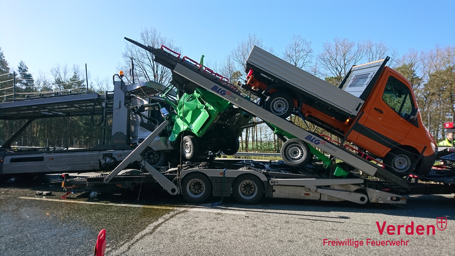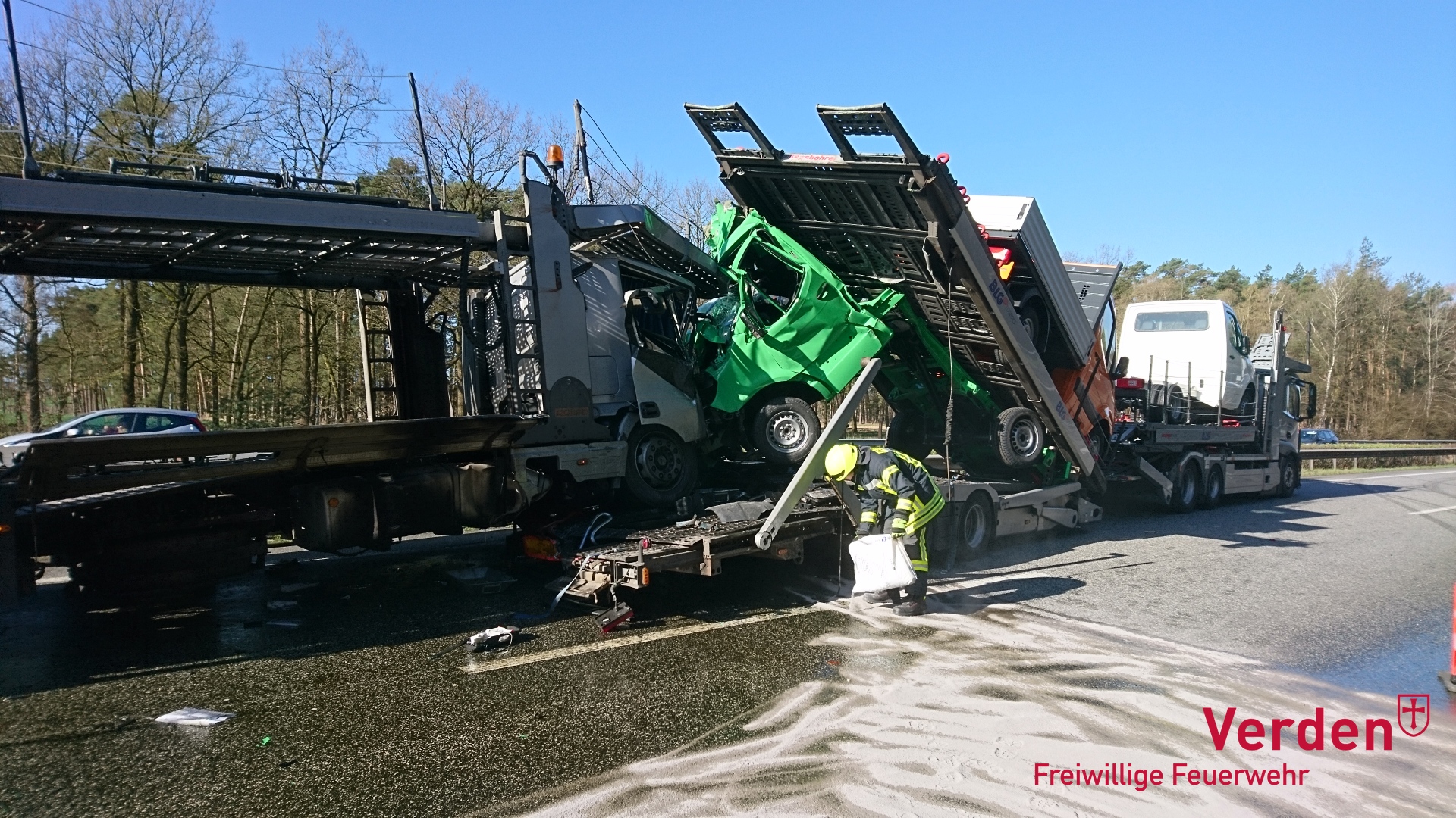 Am Montagmorgen wurde die Ortsfeuerwehr Verden zu einem LKW-Unfall auf die Bundesautobahn 27 zwischen den Anschlussstellen Walsrode-West und Verden-Ost alarmiert. Ein LKW-Fahrer aus dem Heidekreis war an einem Stauende auf einen aus Bremen stammenden LKW aufgefahren. Eine Person wurde bei dem Unfall verletzt.