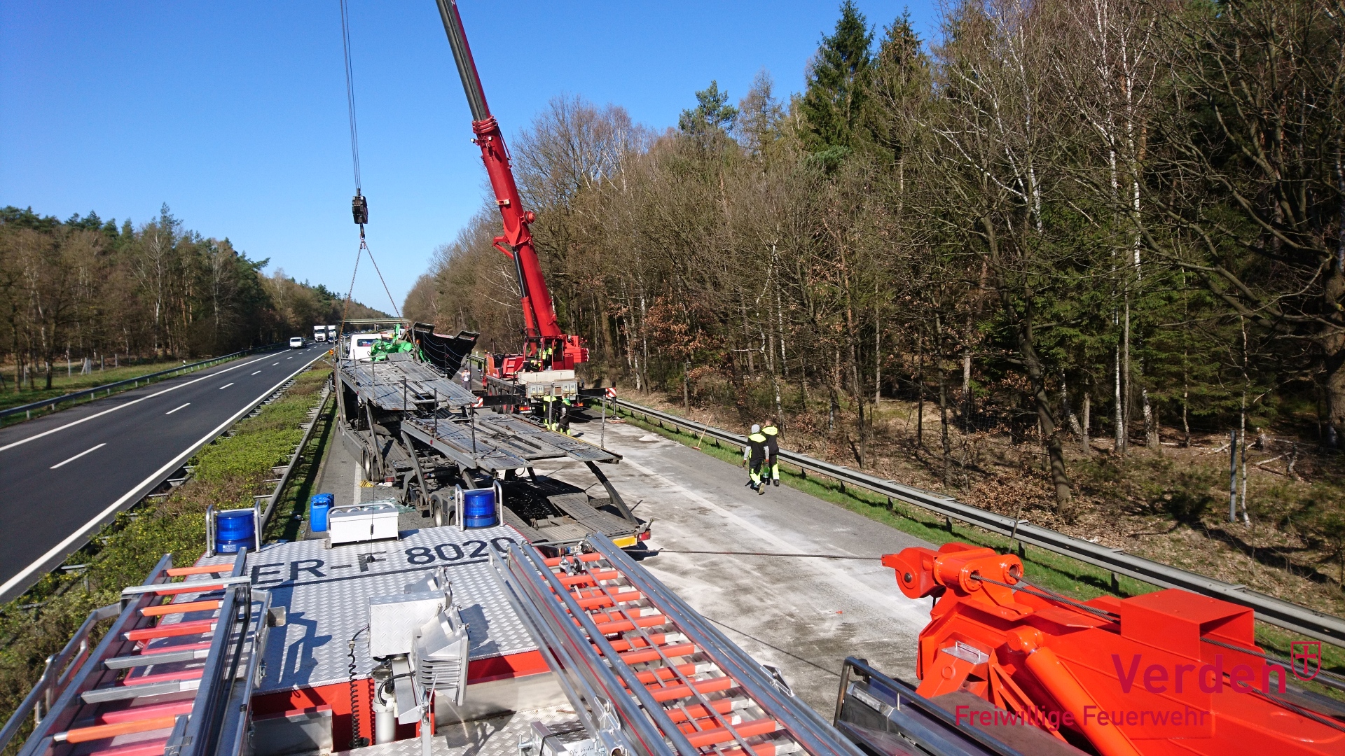 Nach rund 3 Stunden konnten auch die letzten Kräfte der Ortsfeuerwehr Verden, die mit fünf Fahrzeugen und rund 25 Einsatzkräften vor Ort war, den Einsatzort verlassen. Zu diesem Zeitpunkt dauerten die Bergungsarbeiten noch an. Die Polizei hat die Ermittlungen zur Unfallursache aufgenommen.