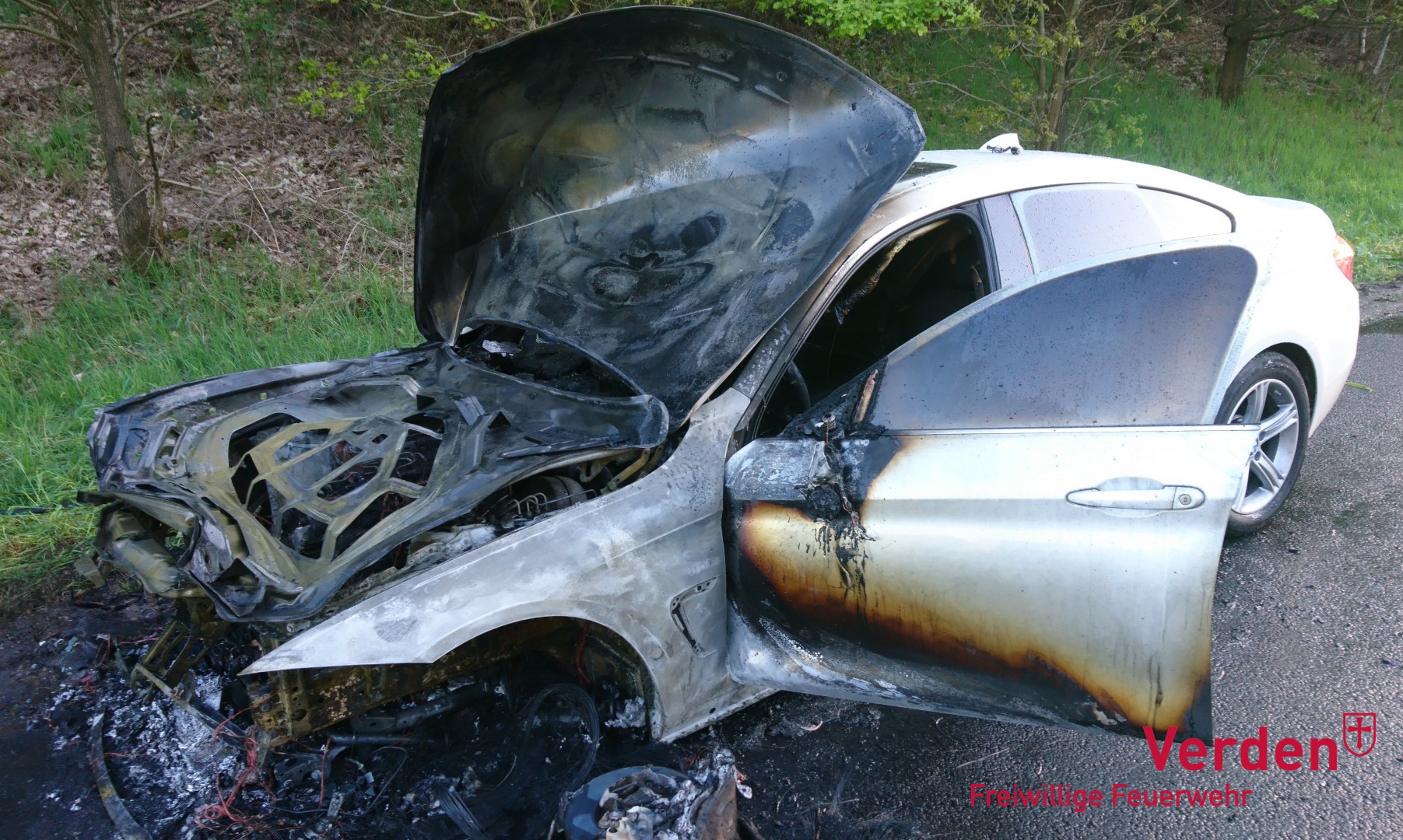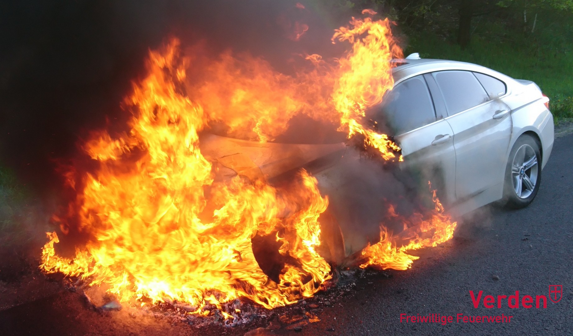 Als die ersten Kräfte der Feuerwehr gegen kurz nach 19 Uhr an der Einsatzstelle, welche sich zwischen den Anschlussstellen Verden – Ost und Walsrode – West befand, eintrafen, brannte das Fahrzeug im vorderen Bereich bereits in voller Ausdehnung. Die Insassen des PKW konnten diesen rechtzeitig verlassen und blieben unverletzt.