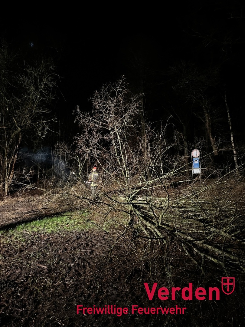 Am Sonntagabend gegen 20.30 Uhr wurde die Ortsfeuerwehr Scharnhorst zu einer Technischen Hilfeleistung alarmiert: Ein Baum war auf eine Straße gestürzt und blockierte diese. Nachdem der Baum mit einer Motorsäge zerkleinert und anschließend zur Seite geräumt worden ist, kam es nur wenige Meter weiter zu einem weiteren Einsatz. Ein Ast war abgeknickt und drohte auf die Straße zu stürzen. Aufgrund der Lage des Astes wurde die Drehleiter der Ortsfeuerwehr Verden hinzu alarmiert. Nach gut 1,5 Stunden konnten die 20 Einsatzkräfte, die mit drei Fahrzeugen ausgerückt sind, wieder einrücken.