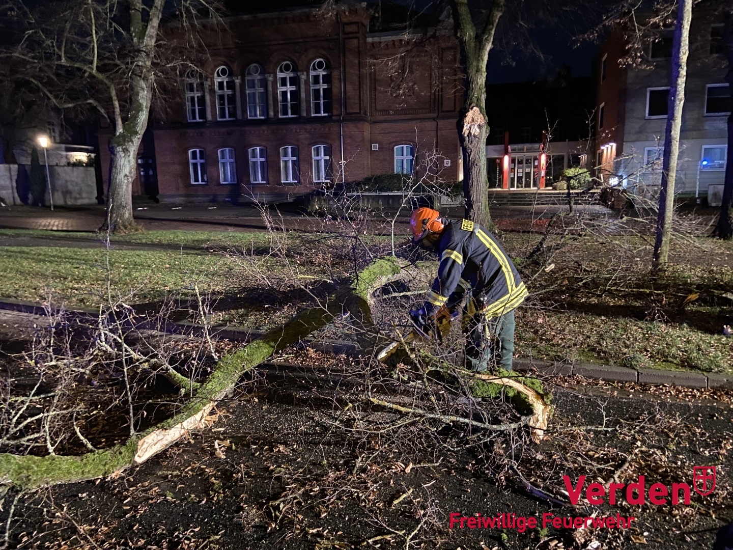 Neben den Einsätzen im Verdener Stadtgebiet rückte die Drehleiter der Ortsfeuerwehr Verden auch unterstützend in die Gemeinde Kirchlinteln zu Sturmeinsätzen aus.