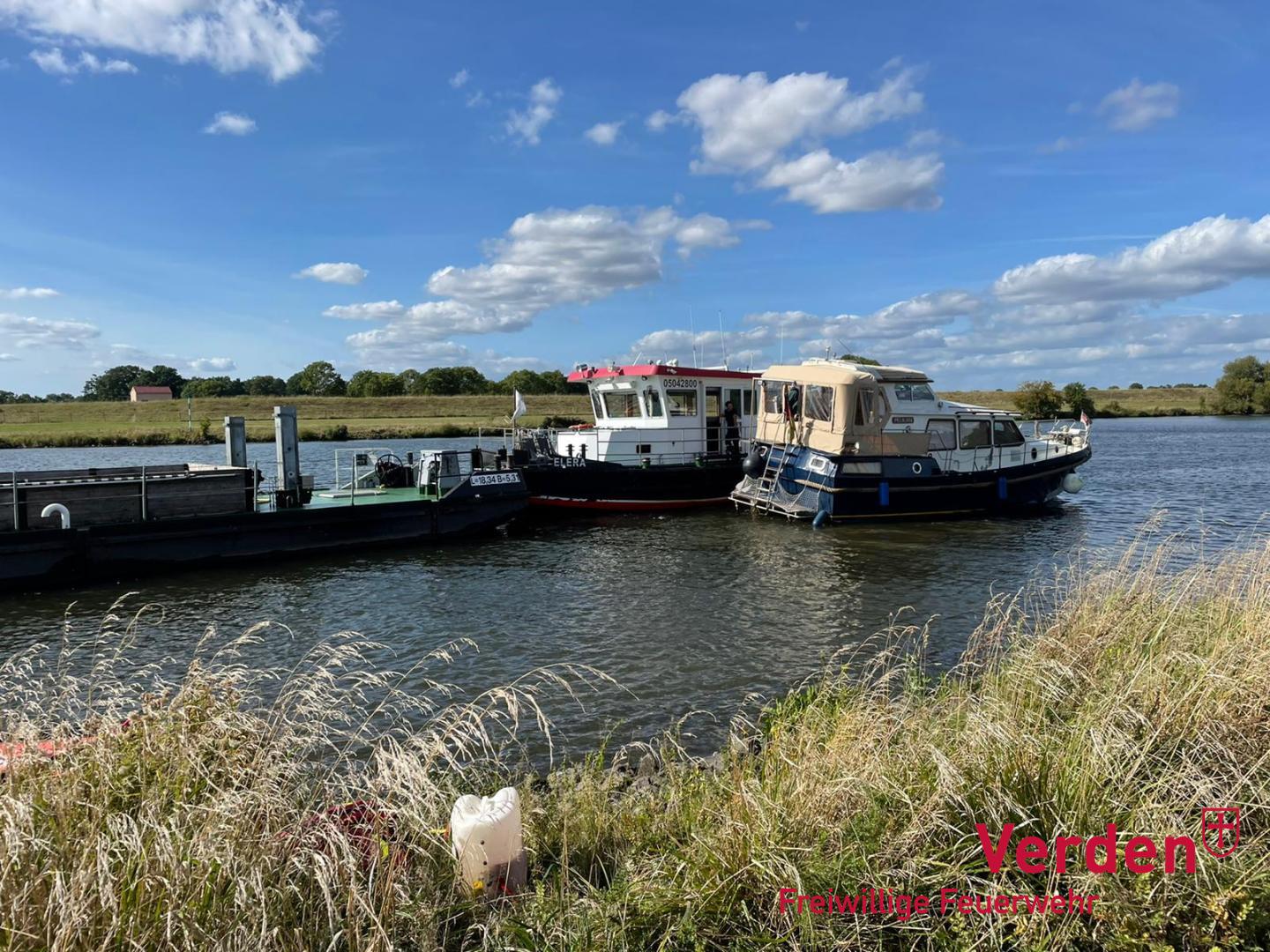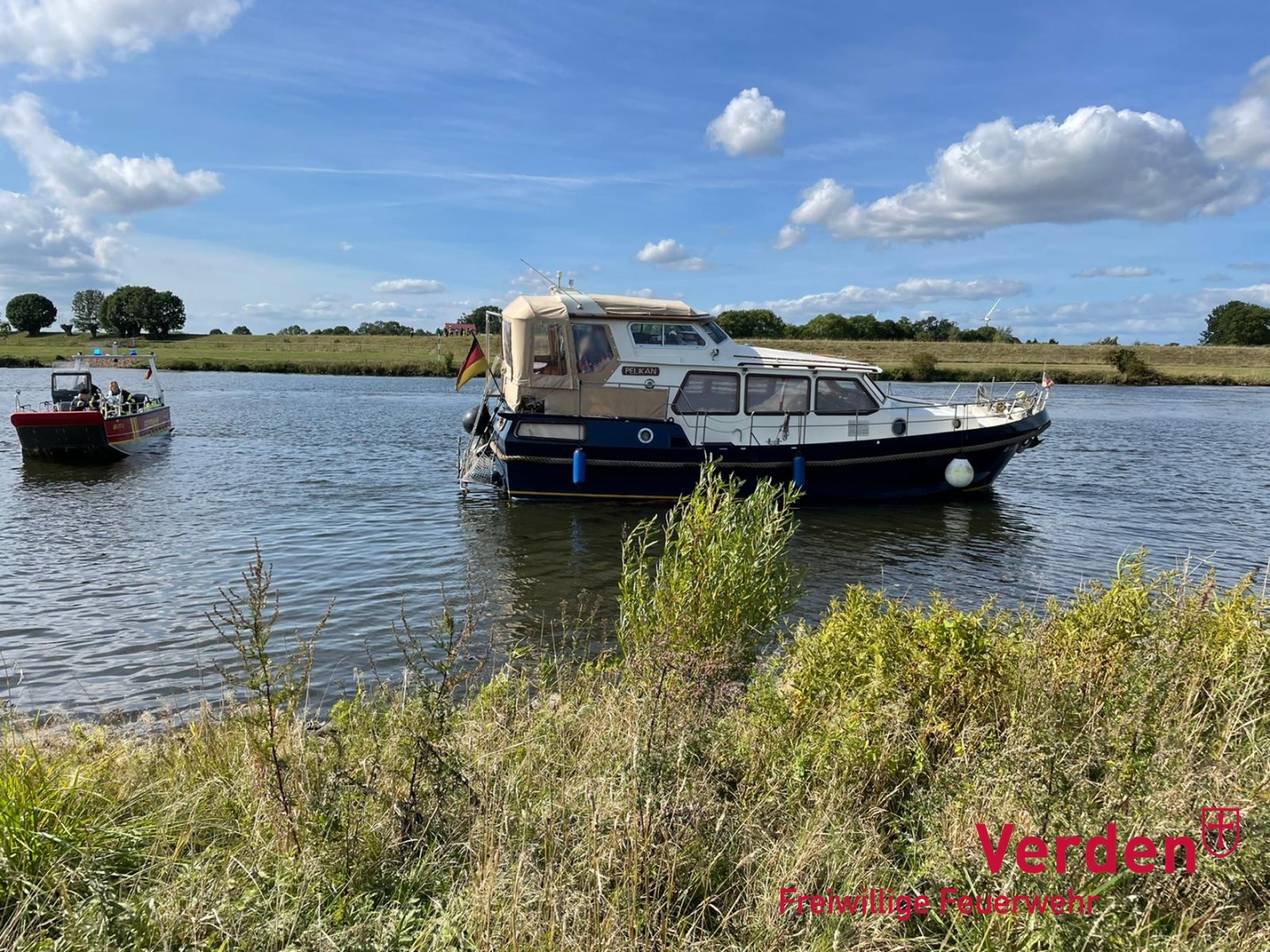 Ein Boot der Freizeitschifffahrt lief am frühen Dienstagnachmittag nahe Hutbergen auf Grund und konnte sich aus eigener Kraft nicht mehr befreien. Das Boot war mit zwei Personen besetzt und befand sich auf dem Weg von Hannover nach Bremen. Einsatzkräfte der Ortsfeuerwehren Blender, Thedinghausen und Verden sowie der DLRG und der FTZ rückten mit mehreren Rettungsbooten aus und erkundeten vor Ort die Lage. Taucher der DLRG bestätigten dann, dass das Boot nicht leckgeschlagen war und auch keine Betriebsstoffe ausliefen. Mit einem Arbeitsschiff des Wasser- und Schiffahrtsamtes konnte das auf einer Buhne aufgelaufene Boot wieder freigeschleppt werden. Nach rund zwei Stunden konnte schließlich der Großteil der Einsatzkräfte einrücken und die Einsatzstelle an die Wasserschutzpolizei übergeben werden, die weitere Ermittlungen zur Unfallursache aufnahm. Ein Rettungswagen stand während des Einsatzgeschehens vorsichtshalber an der Einsatzstelle in Bereitschaft.