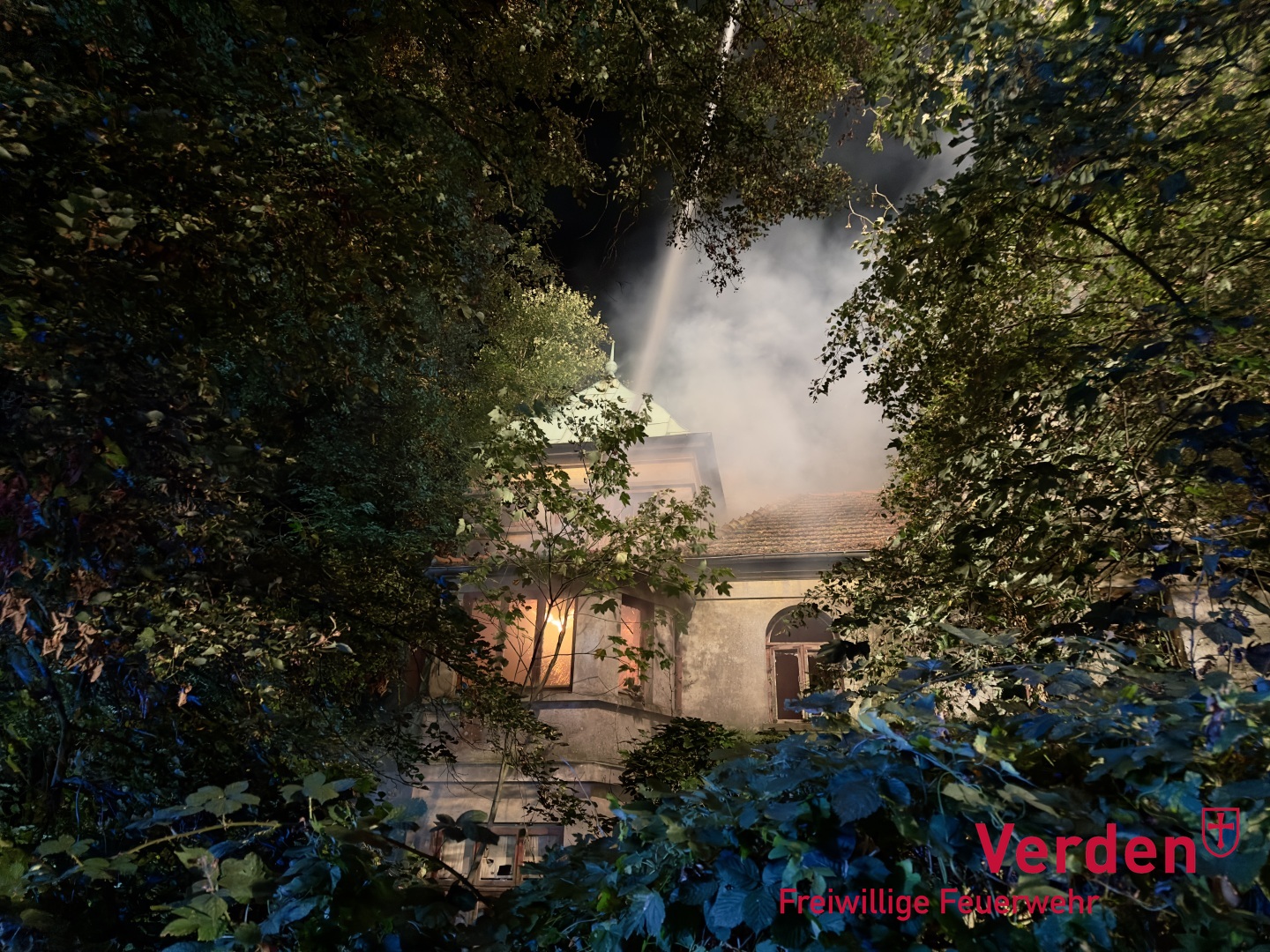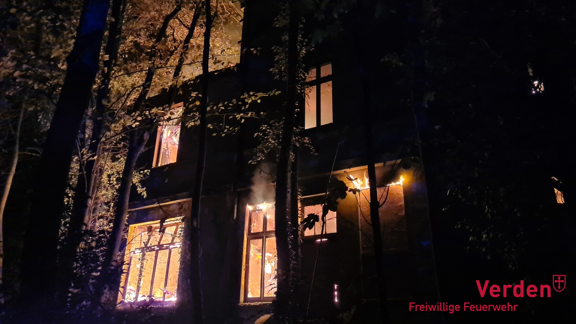 Alarmiert gegen 01:30 Uhr am frühen Donnerstagmorgen, rückten mehrere Ortsfeuerwehren zu einem gemeldeten Vollbrand der sogenannten Verdener Geistervilla am Burgberg aus. Zuvor waren zahlreiche Anrufe von Anwohnern in der Rettungs- und Feuerwehrleitstelle des Landkreises Verden eingegangen.