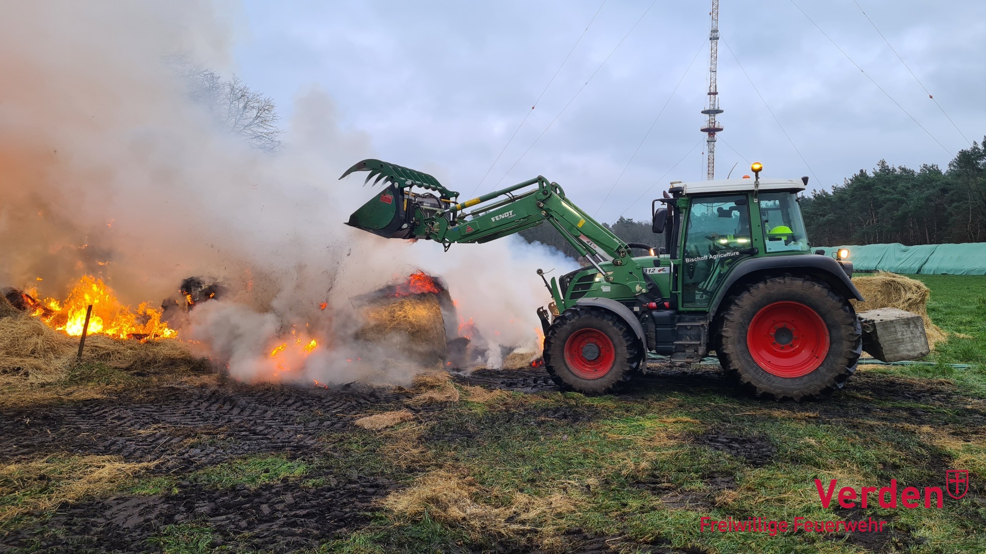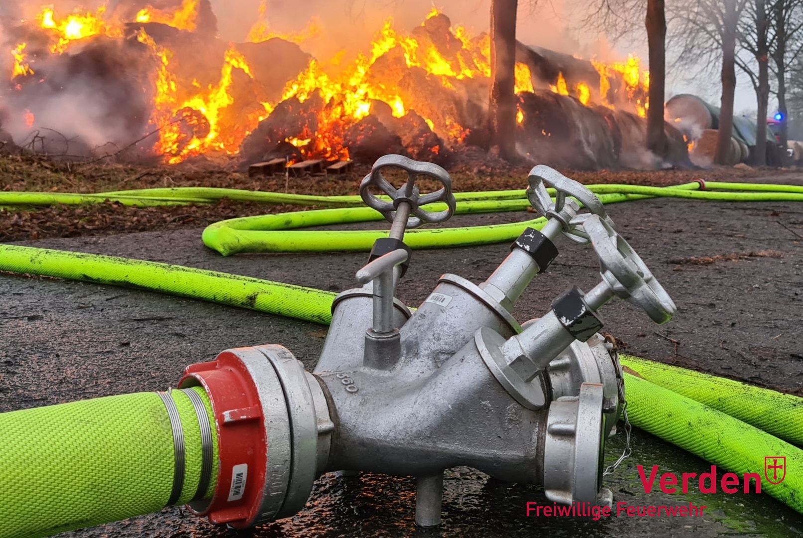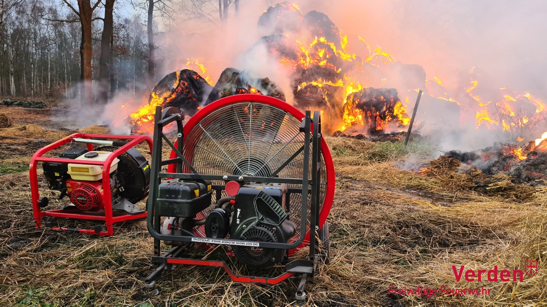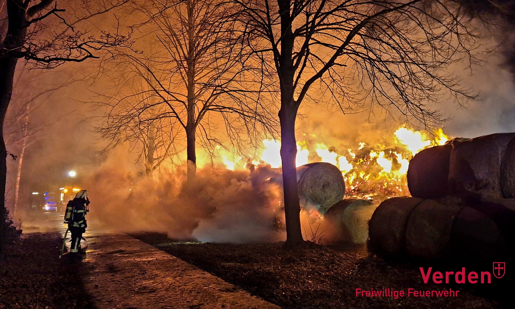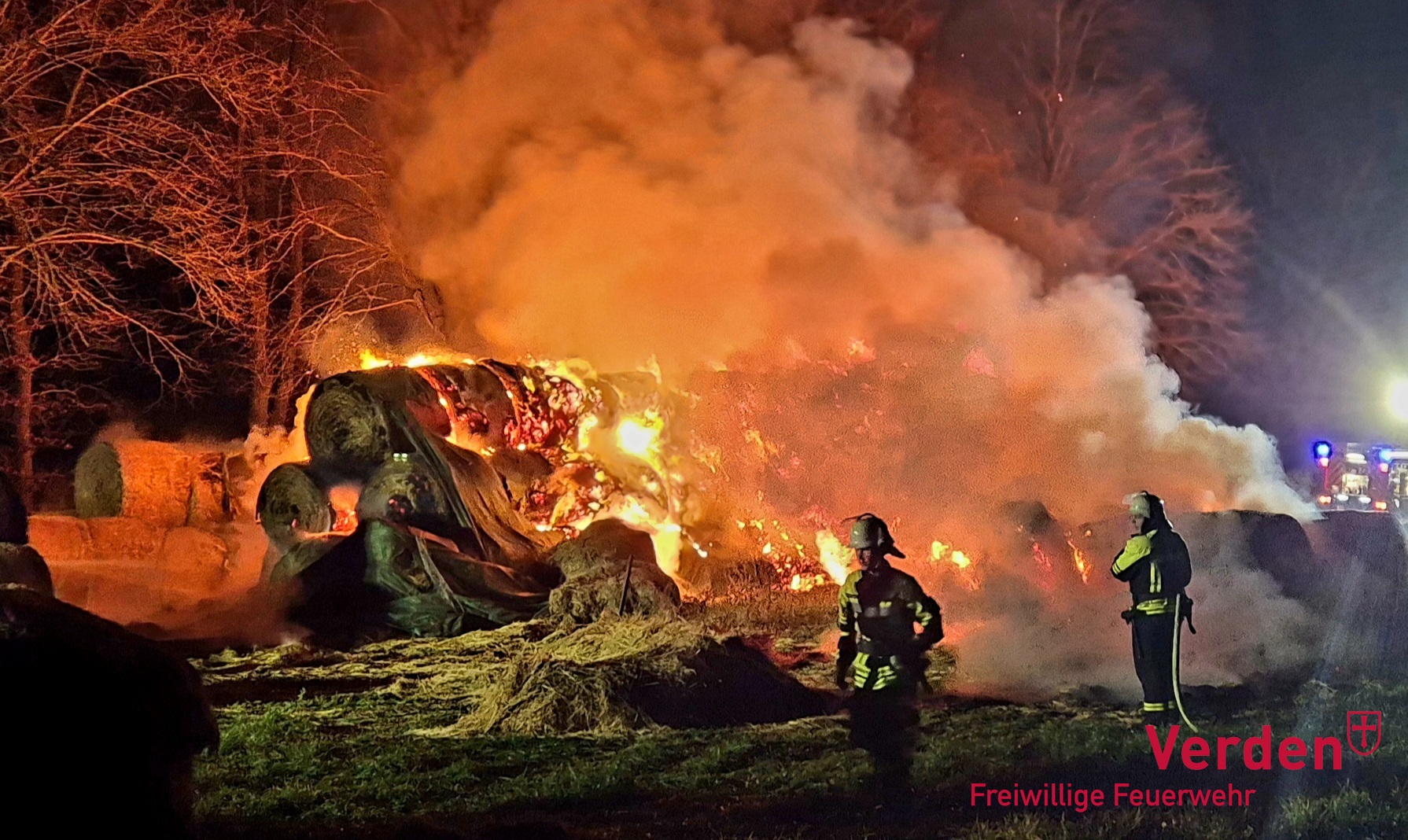 Am frühen Samstagmorgen wurden die Ortsfeuerwehren Weitzmühlen, Kirchlinteln, Eitze und Verden zu einem Brandeinsatz zum Speckener Weg nach Eitze alarmiert. Dort waren rund 200 Rundballen mit Heu in Brand geraten. Weitere Rundballen konnten durch den Einsatz der Feuerwehr und einen Landwirt vor den Flammen gerettet werden.