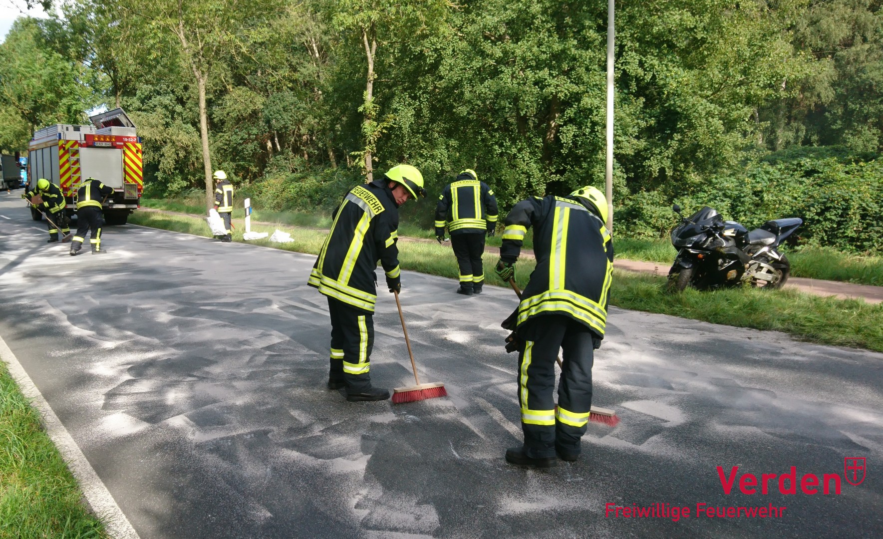 Die Aufgabe der Ortsfeuerwehr Verden, die mit vier Fahrzeugen und rund 20 Einsatzkräften vor Ort war, bestand darin auslaufende Betriebsstoffe aufzufangen sowie die Fahrbahn von diesen zu reinigen. Für die Dauer der Arbeiten staute sich der Verkehr auf der Max-Planck-Straße.